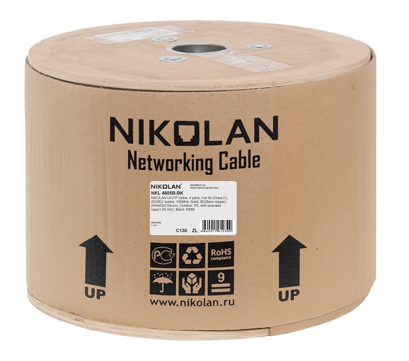 Описание NKL 4805B-BK кабель NIKOLAN U/UTP 4 пары (305 м/бухта)
