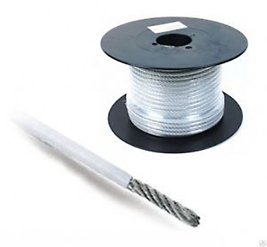 Трос стальной оцинкованный 1 мм в ПВХ покрытии, бухта 200 м.