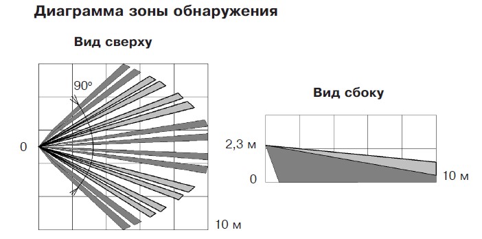 Угол обзора зоны обнаружения в горизонтальной плоскости: 90°