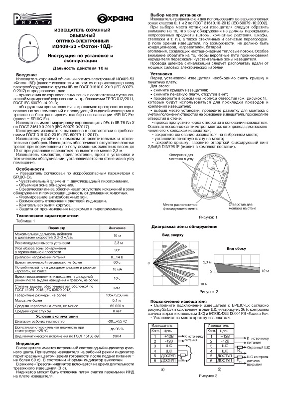 Описание Фотон-18Д (ИО 409-53) (Ладога-Ex) извещатель охранный объемный оптико-электронный с защитой от животных Риэлта